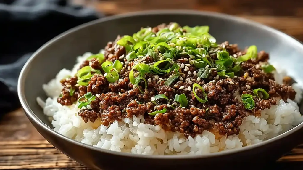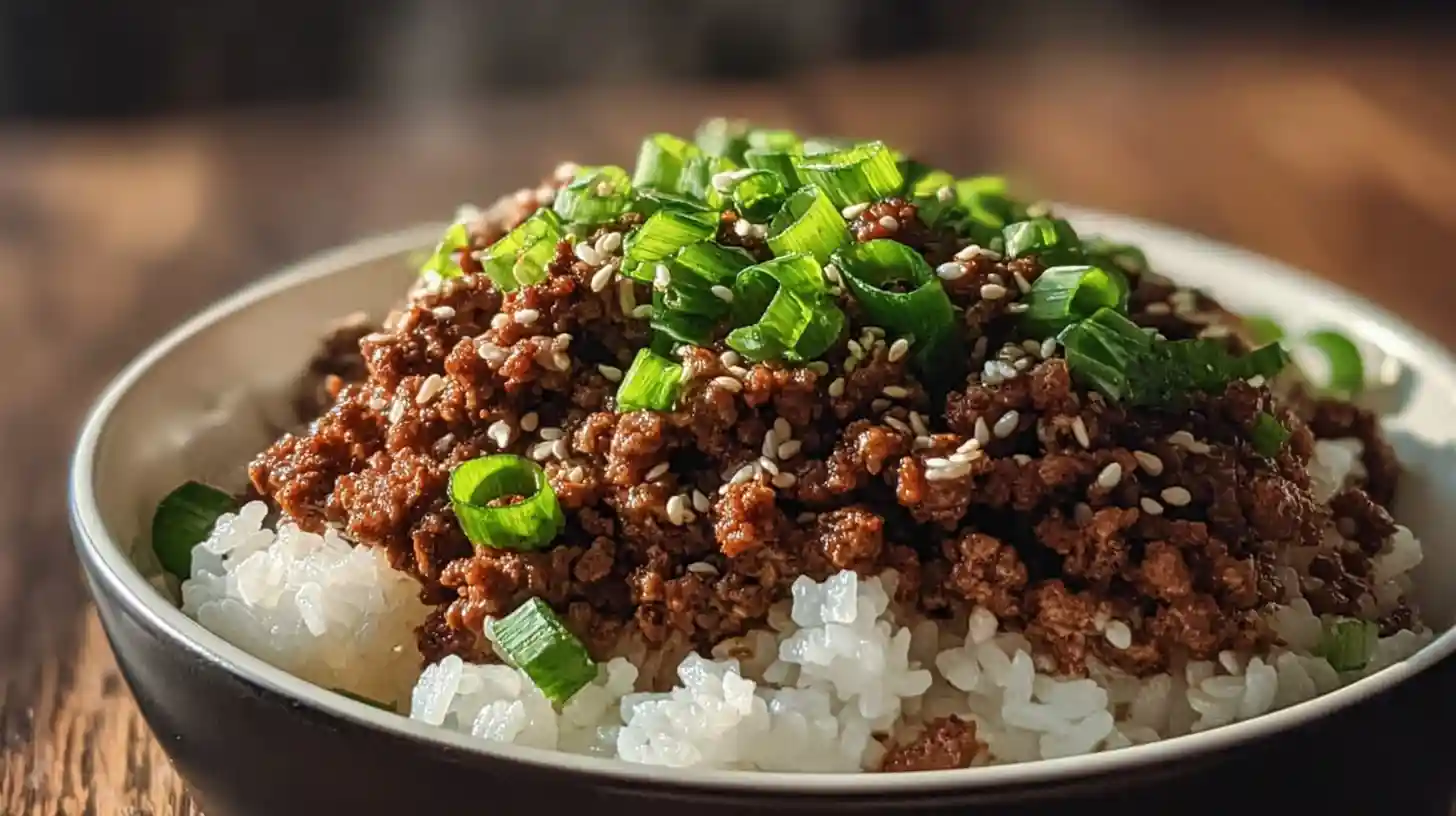 Korean Ground Beef Bowl brings together umami-rich flavors without needing hours of marinating or complicated techniques. The beef gets deeply caramelized in its own fat, which creates these crispy, flavorful edges. Meanwhile, garlic and fresh ginger add sharpness and a little heat that balances the saltiness of soy sauce. Sesame oil finishes everything with a nutty, aromatic layer that makes the whole dish feel complete.